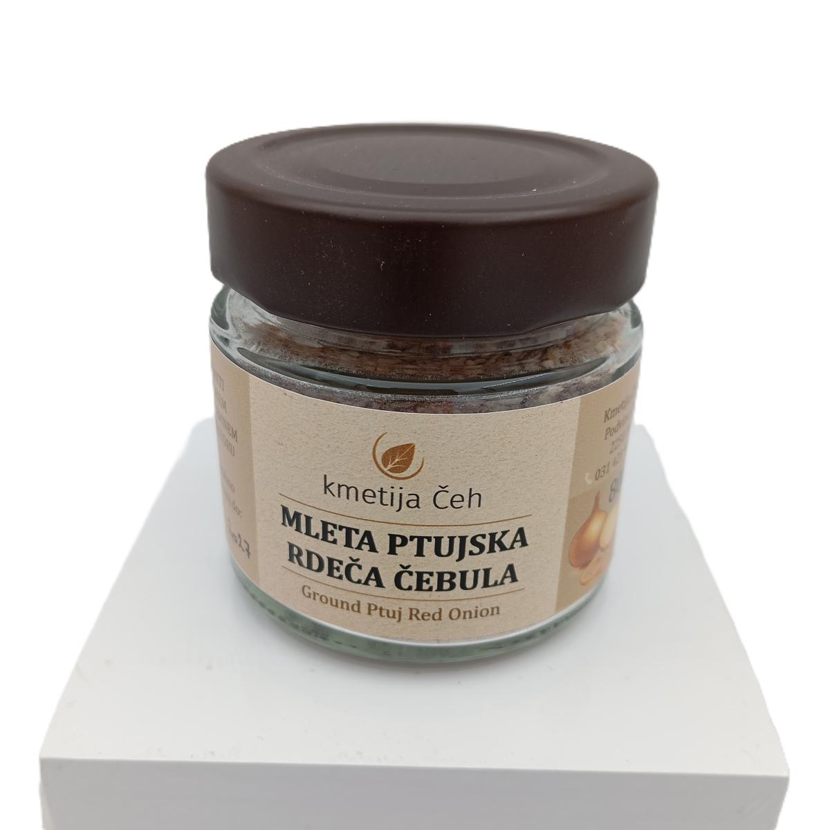 Čebula je posušena ( ne pražena) in grobo mleta. Mleta ptujska rdeča čebula je odlična alternativa sveže čebule. Ko pride v stik z tekočino nabrekne in je spet kot sveža. Nepogrešljiva za omake, enolončnice dodatek k različnim namazom…